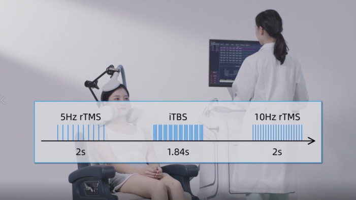 還可通過(guò)設(shè)置對(duì)rTMS,TBS進(jìn)行多重自由混合調(diào)制,輸出混疊變頻脈沖,在一定程度內(nèi)有效預(yù)防神經(jīng)出現(xiàn)的頻率耐受,從而快速提升療效。