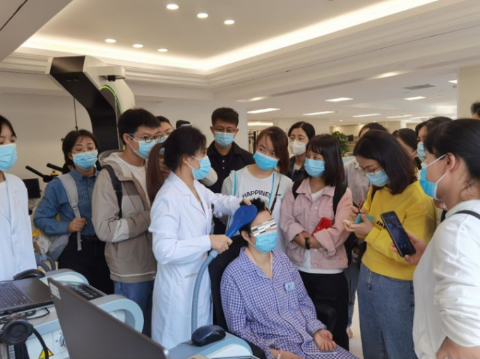 空軍軍醫(yī)大學(xué)第一附屬醫(yī)院康復(fù)醫(yī)學(xué)科薛白潔老師帶來(lái)經(jīng)顱磁刺激操作演示(依瑞德CCY-I磁場(chǎng)刺激儀)