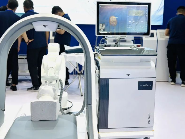 Mag-aim由依瑞德集團自主研制,運用全球首創(chuàng)視覺識別定位算法,融合醫(yī)學(xué)影像處理、定位導(dǎo)航、智能操控、自動檢測閾值(aMEP)等前沿技術(shù),高度協(xié)同,引領(lǐng)TMS技術(shù)進入精準(zhǔn)、智能、高效的2.0時代。Mag-aim阿米配備SNT療法(斯坦福療法)專項模塊設(shè)計,可將抑郁癥治療有效率提高到90%以上,成為展臺的明星,咨詢者絡(luò)繹不絕。