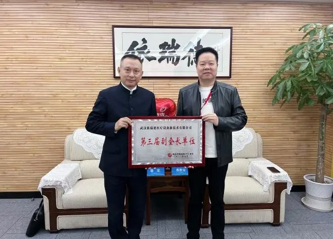 座談會(huì)后,蹇宏秘書(shū)長(zhǎng)為依瑞德授“第三屆副會(huì)長(zhǎng)單位”牌。