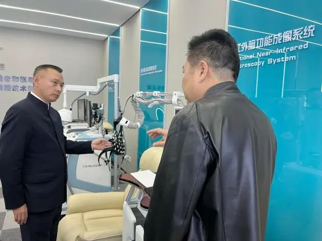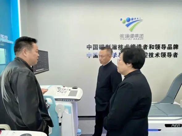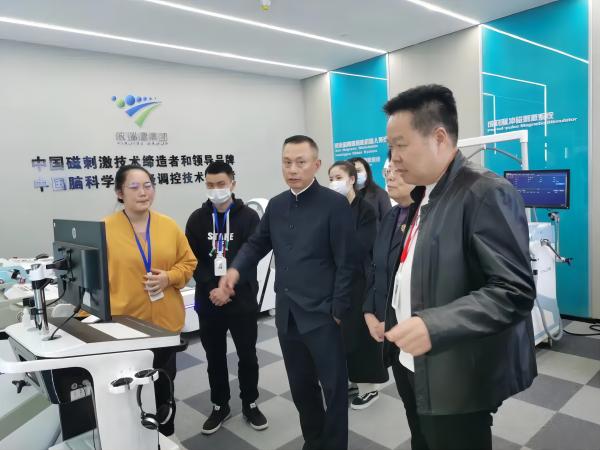 蹇宏一行參觀了依瑞德集團(tuán)四樓展廳,結(jié)合當(dāng)前人口老齡化和疫情后精神心理疾病高發(fā)的現(xiàn)狀,對(duì)經(jīng)顱磁刺激儀、失眠治療儀等產(chǎn)品能無(wú)創(chuàng)調(diào)節(jié)大腦功能,治療失眠、抑郁、焦慮等疾病,產(chǎn)生濃厚興趣。