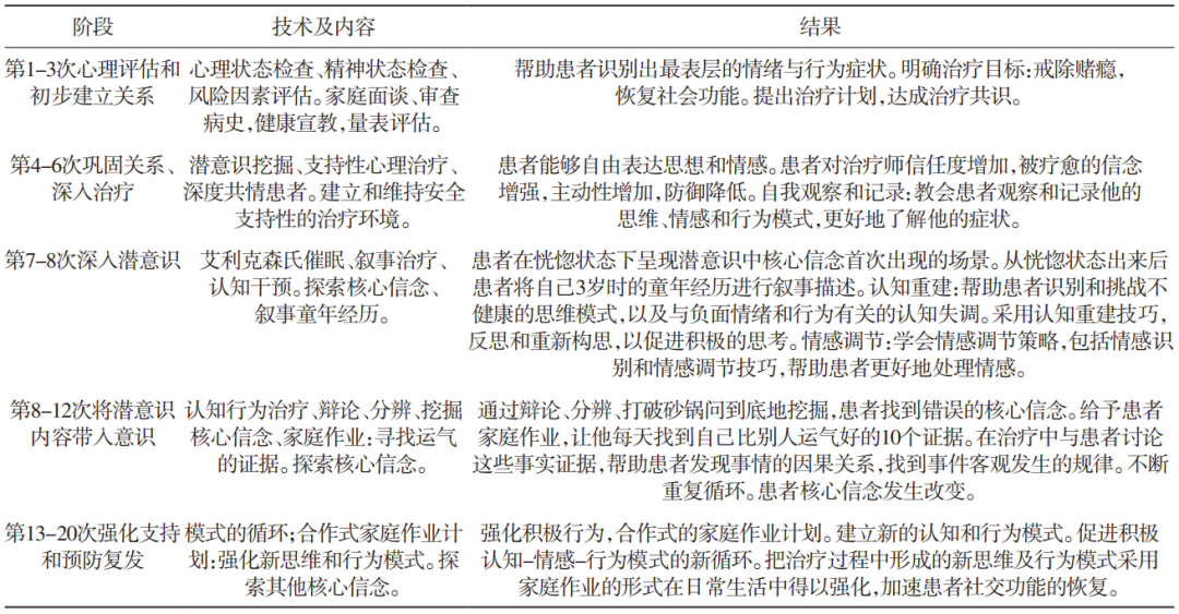 表2:心理治療各階段內(nèi)容及結(jié)果概括