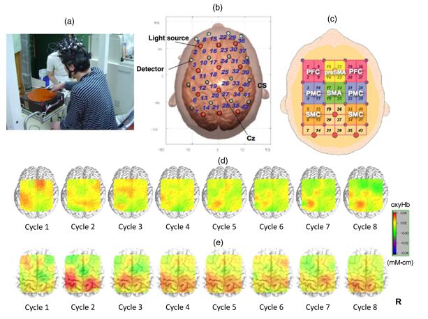然而,由于在日常的情況下,大部分的動(dòng)作都是在坐位或站立的時(shí)候執(zhí)行的,由于fNIRS移動(dòng)方便,不受環(huán)境和運(yùn)動(dòng)體位的限制。所以,fNIRS對(duì)于運(yùn)動(dòng)學(xué)習(xí)的腦部監(jiān)測(cè)具有更加廣泛的意義。