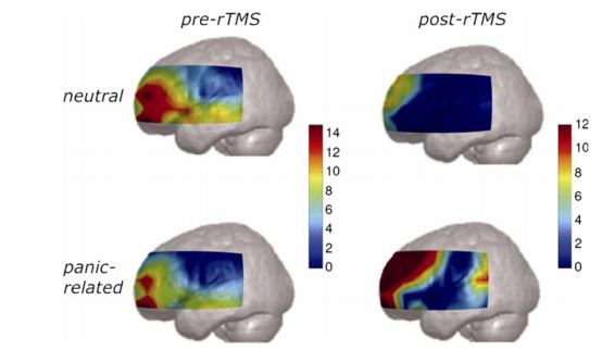 2、Dresler等人[2]的研究納入了1名驚恐障礙和共病抑郁癥患者,該患者接受了為期3周的左側(cè)前額葉皮質(zhì)高頻rTMS治療,在rTMS治療前后,研究通過fNIRS測量患者在執(zhí)行情緒Stroop任務(wù)中大腦皮層的[oxy-Hb]變化。測量結(jié)果表明,rTMS可能會調(diào)節(jié)驚恐患者與驚恐相關(guān)的前額葉腦功能障礙。并且它可以作為焦慮障礙的一種可能的治療選擇。