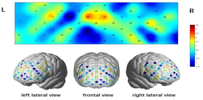 圖1 根據(jù)布羅德曼分區(qū),近紅外光譜系統(tǒng)的53通道的通道排列