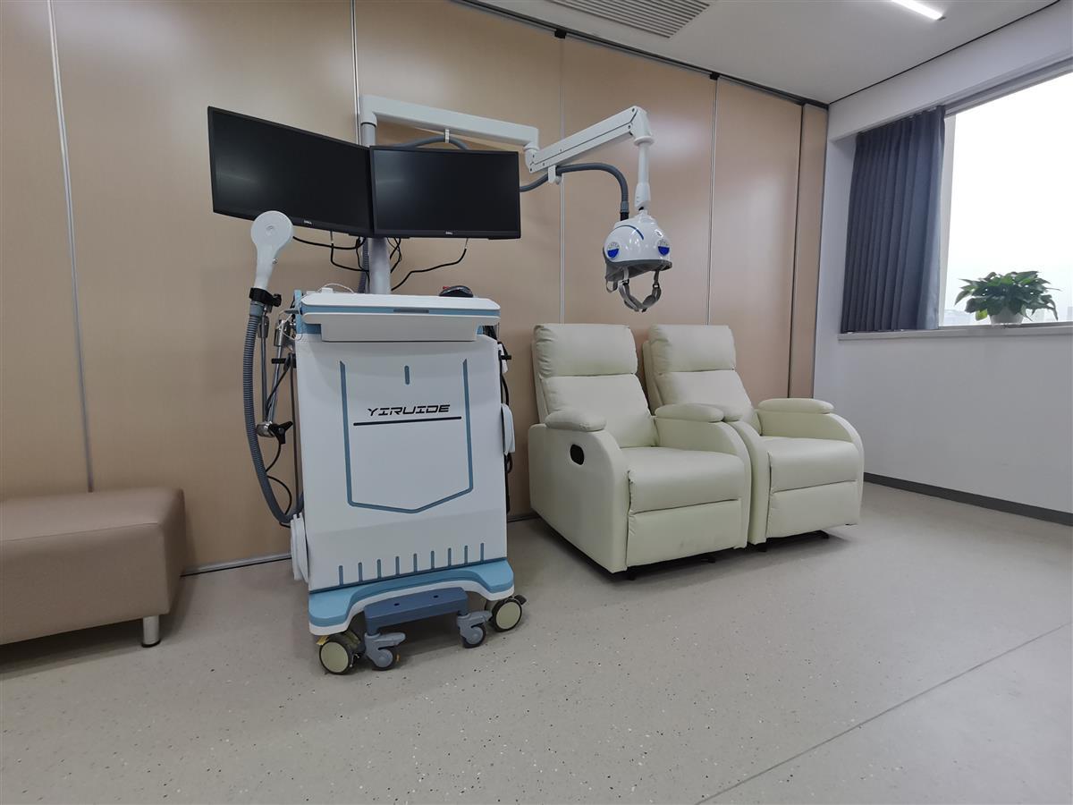 在該中心,一組組尖端的檢測治療設(shè)備十分炫酷。其中,精準導航磁刺激機器人和近紅外腦功能成像系統(tǒng)成為中心的兩大“王牌”。