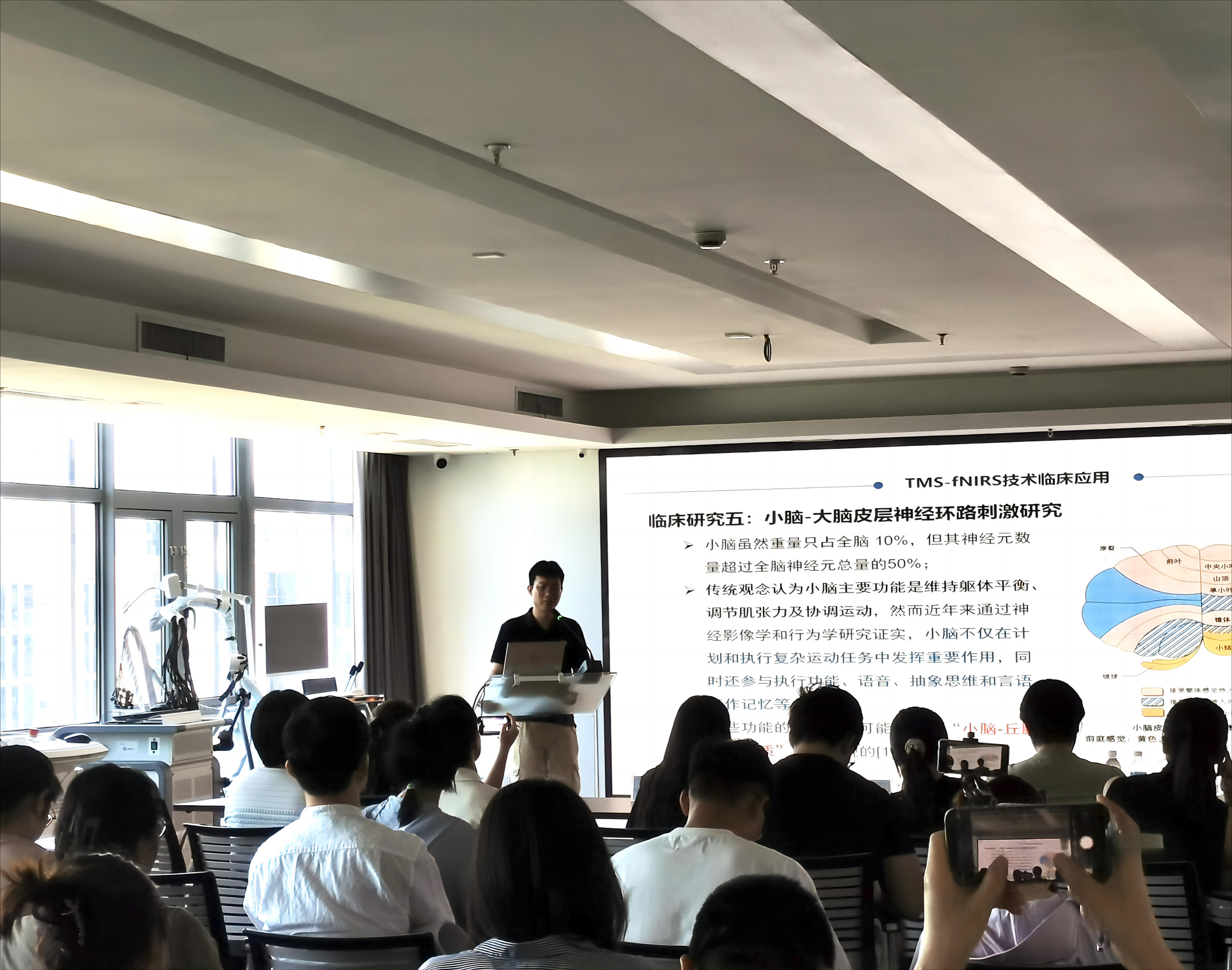 國家康復(fù)輔具研究中心的老師現(xiàn)場講解TMS-fNIRS聯(lián)用知識要點