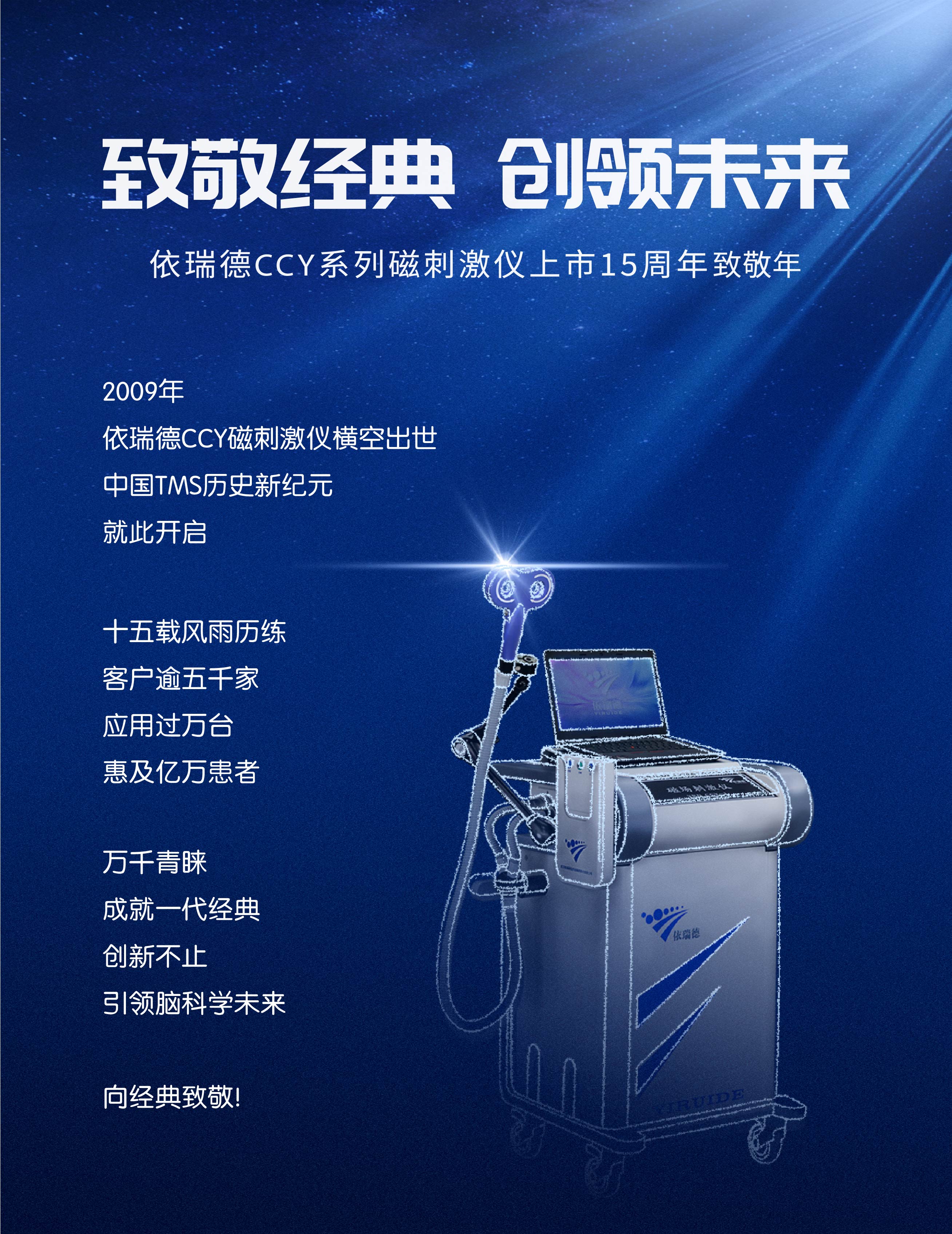 依瑞德CCY-I型經(jīng)顱磁刺激儀,作為國產(chǎn)第一代經(jīng)顱磁,到2024年已上市15周年。它2009年取得中國首張經(jīng)顱磁刺激儀注冊證,打破國外技術(shù)壟斷,推動經(jīng)顱磁刺激設(shè)備國產(chǎn)超越和替代,使這項無創(chuàng)性神經(jīng)調(diào)控技術(shù)逐漸從科研和少量臨床應用逐漸走向普及。