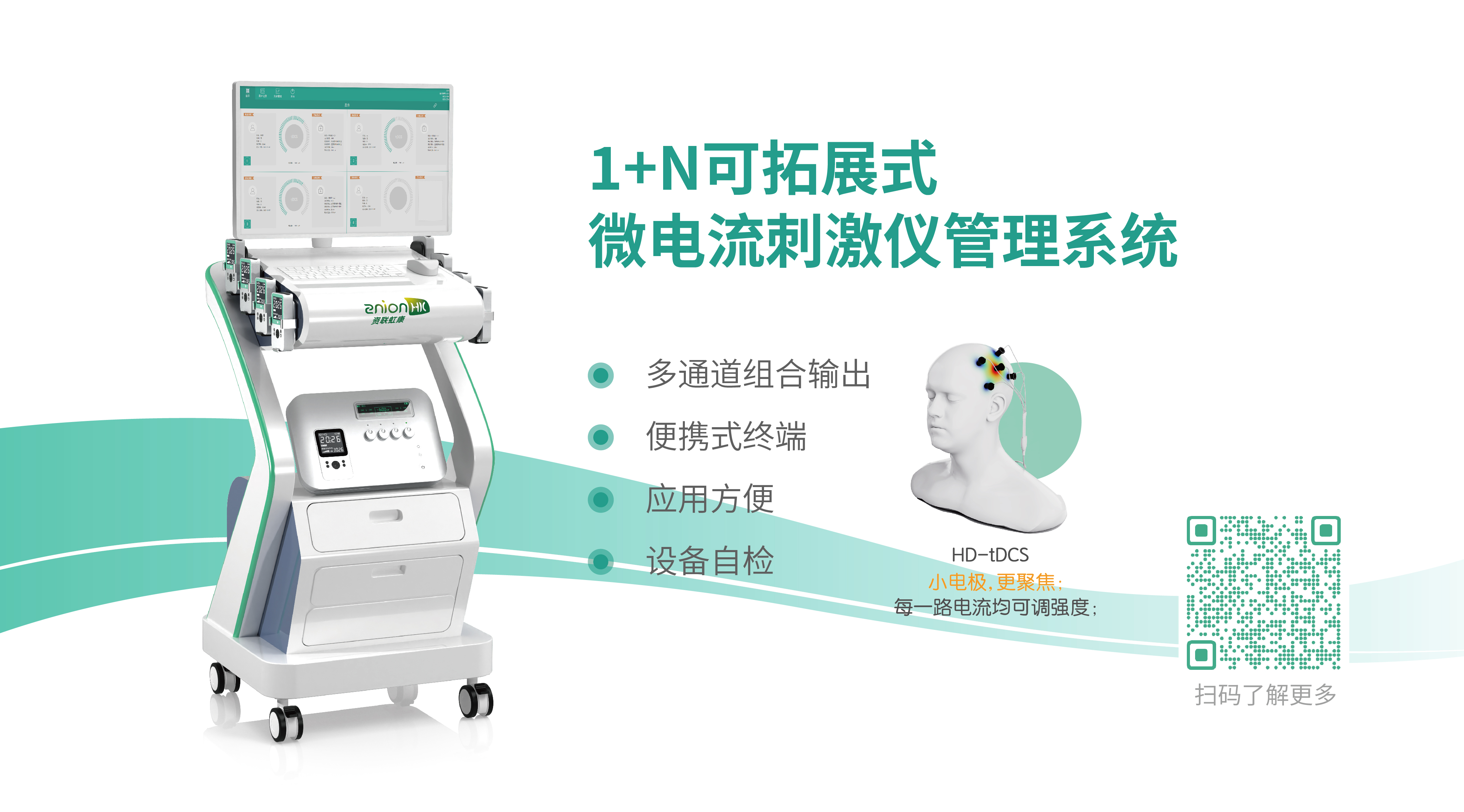 資聯(lián)虹康EM6080S/EM6080+EM6000經(jīng)顱電刺激儀,通過向特定的區(qū)域輸入電流,調(diào)節(jié)神經(jīng)元的興奮性和相關(guān)神經(jīng)遞質(zhì)的分泌,進而影響相應腦區(qū)的功能,達到治療神經(jīng)精神性疾病的目的。設(shè)備可實現(xiàn)經(jīng)顱直流電(tDCS)、經(jīng)顱交流電(tACS)、經(jīng)顱隨機噪聲刺激(tRNS)、經(jīng)顱微電流刺激(CES)等多種刺激模式,且可擴展至高精度經(jīng)顱直流電刺激模式(HD-tDCS),滿足更多臨床和科研需求。