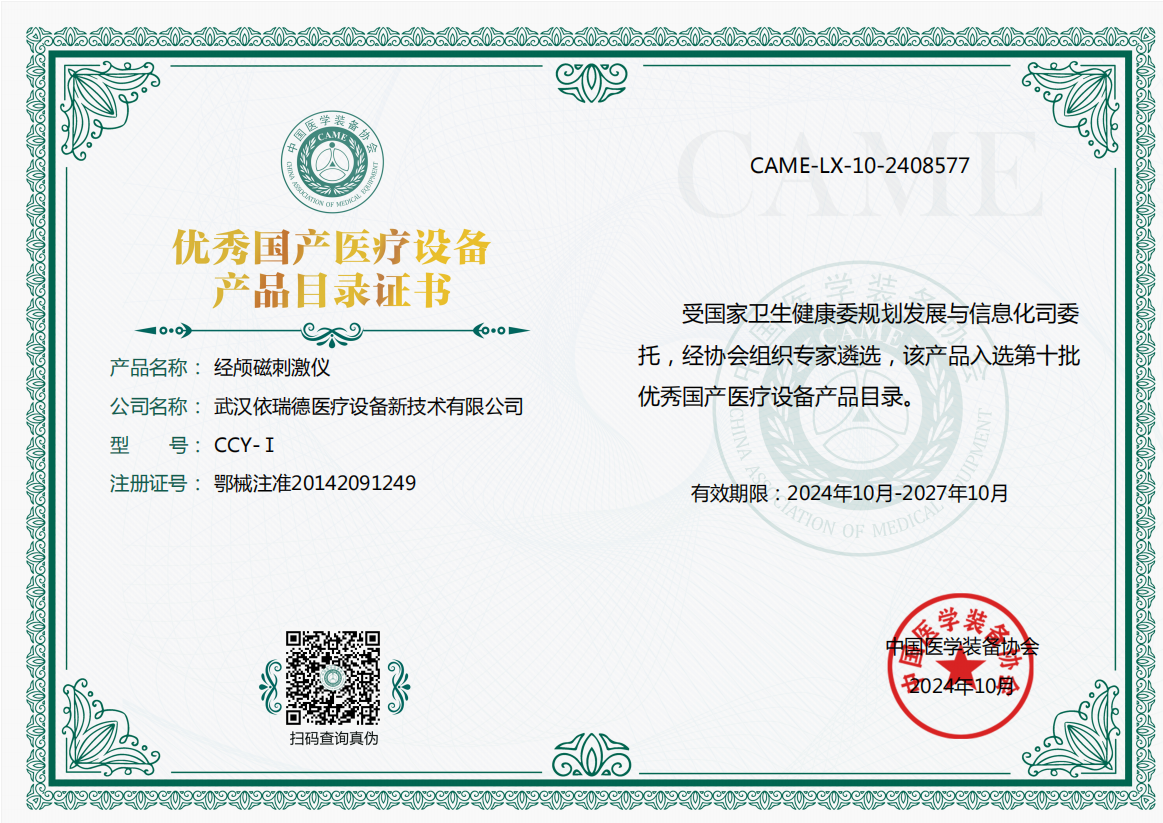 △ 依瑞德集團旗下武漢依瑞德醫(yī)療設(shè)備新技術(shù)有限公司的經(jīng)顱磁刺激儀,成功入選目錄。