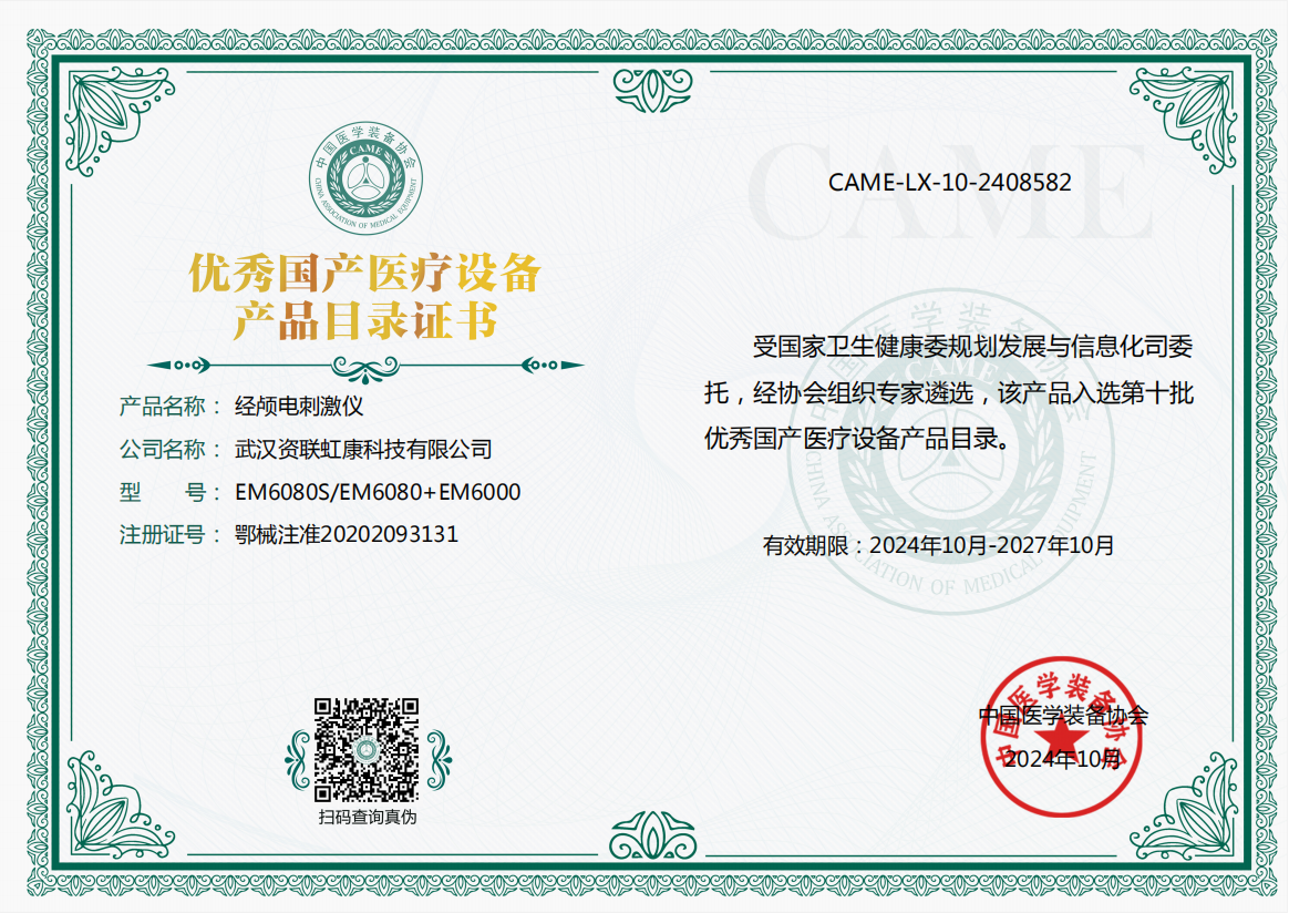 △ 依瑞德集團旗下武漢資聯(lián)虹康科技有限公司的經(jīng)顱電刺激儀,成功入選目錄。