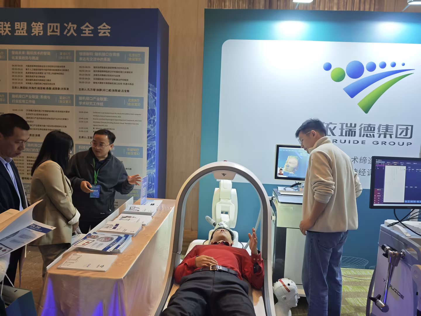 依瑞德在腦機(jī)大會(huì)現(xiàn)場(chǎng)展示的fNIRS-EEG聯(lián)用技術(shù)和設(shè)備
