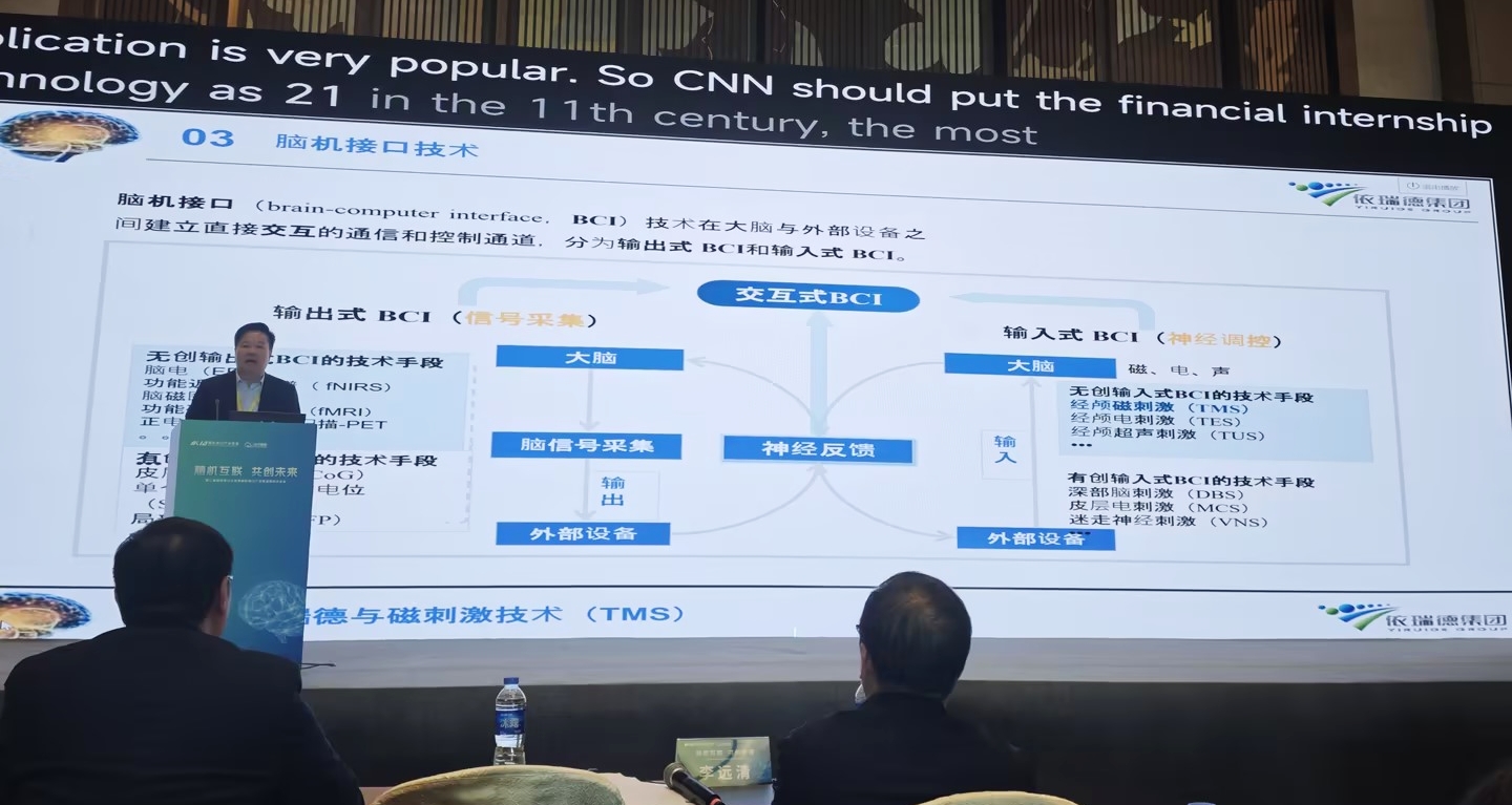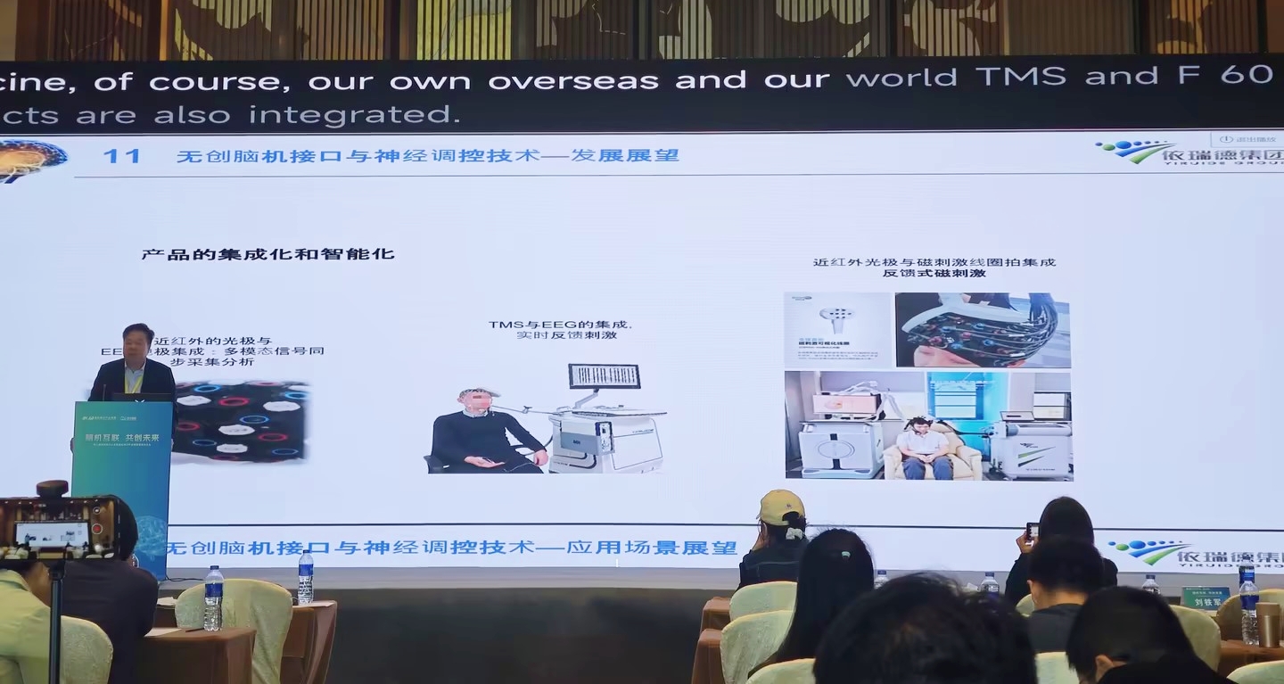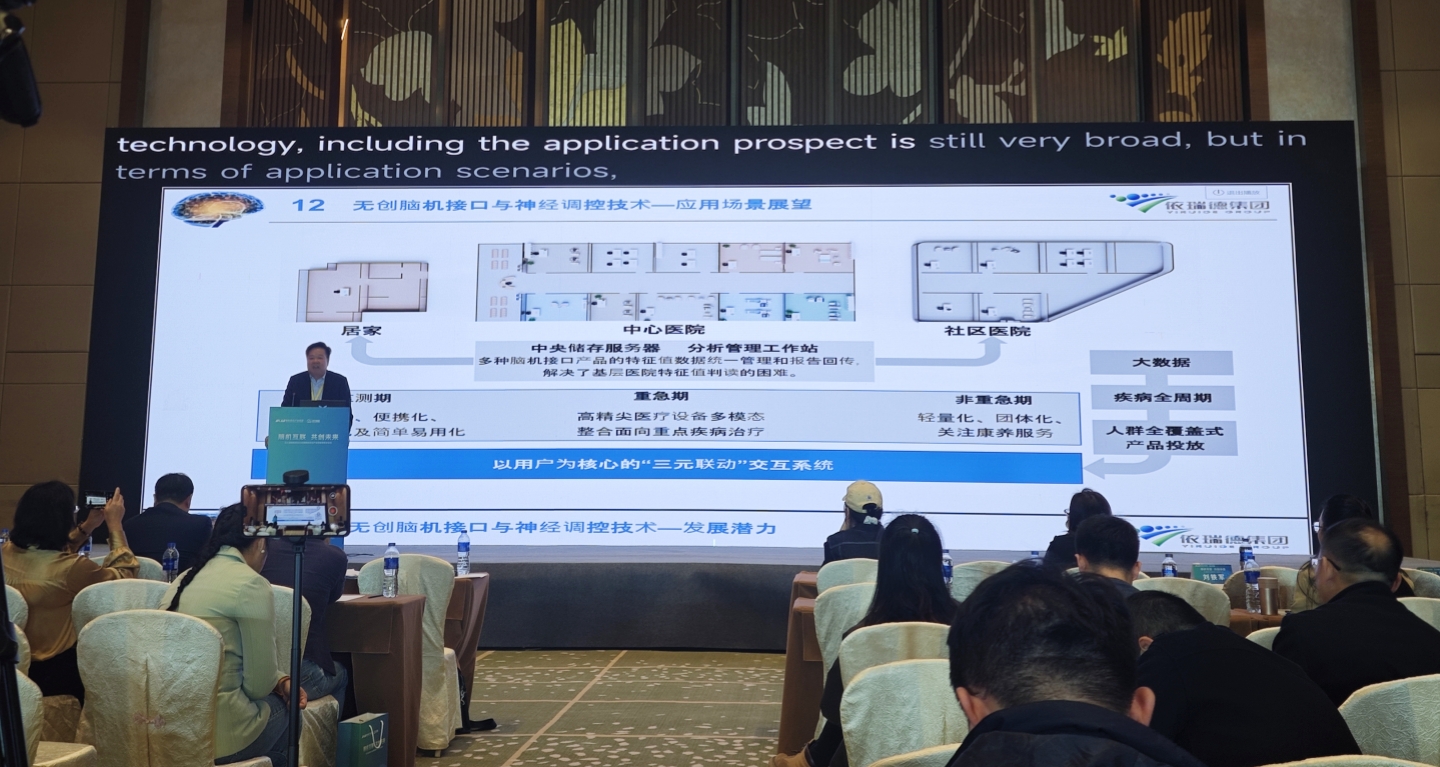 11月16日下午,依瑞德集團(tuán)總裁蔡勝安先生作題為《無(wú)創(chuàng)腦機(jī)接口和神經(jīng)調(diào)控技術(shù)的發(fā)展現(xiàn)狀和應(yīng)用前景》的主題報(bào)告。