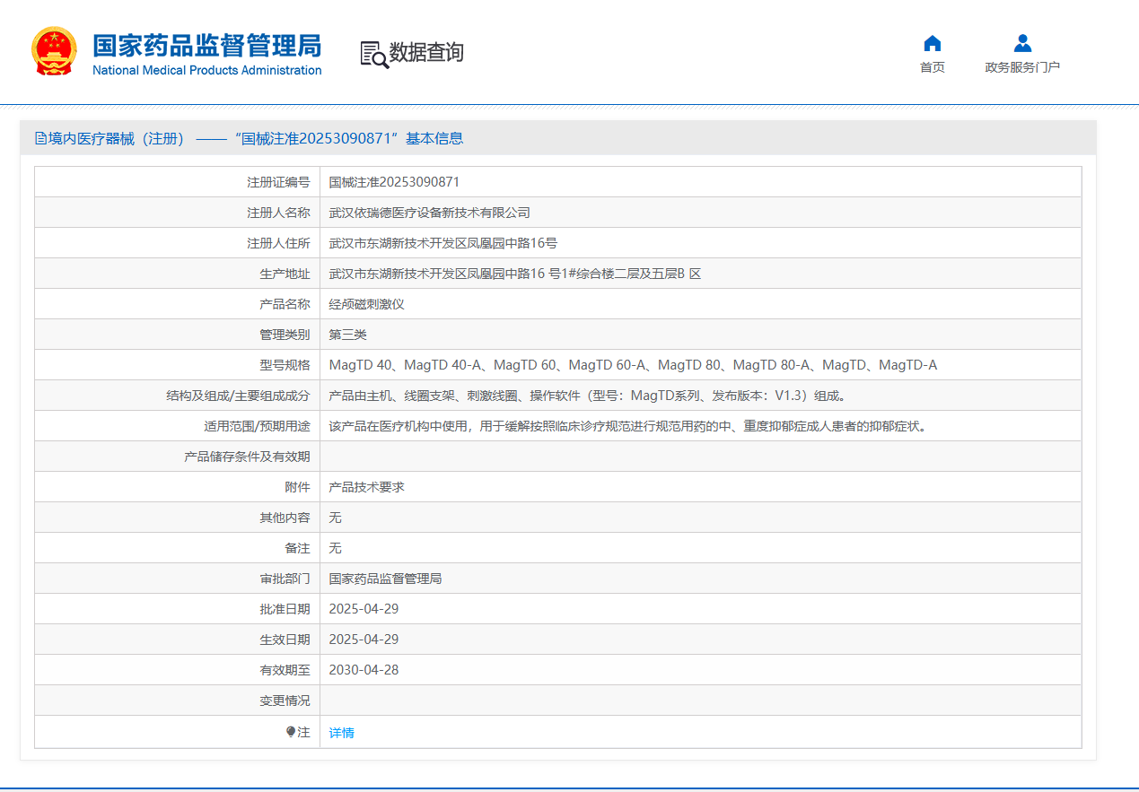 2009年,依瑞德通過(guò)自主研發(fā),推出國(guó)內(nèi)首個(gè)獲得醫(yī)療器械注冊(cè)證的經(jīng)顱磁刺激儀,打破國(guó)外技術(shù)壟斷。