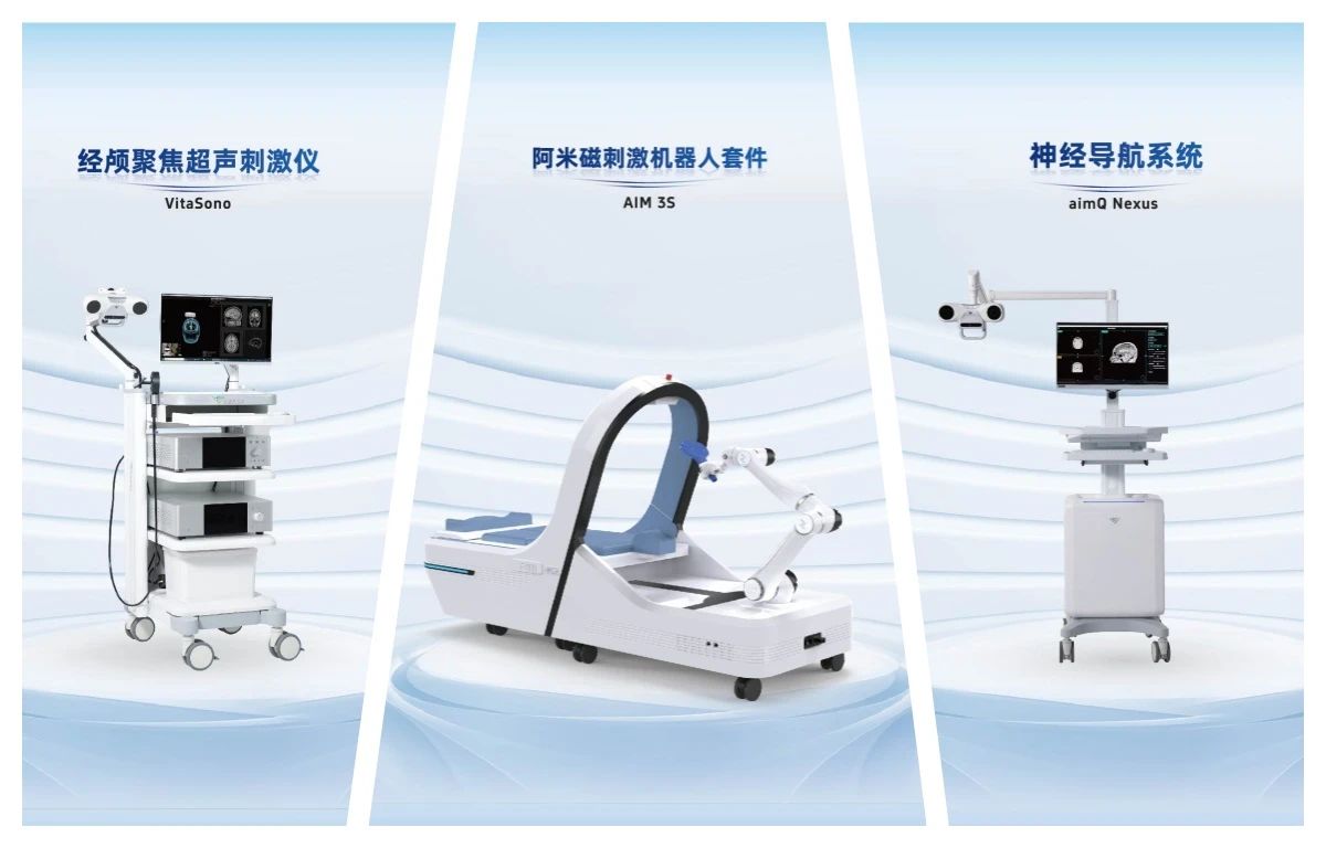 經(jīng)顱聚焦超聲刺激借相控陣技術(shù)穿透顱骨,實(shí)現(xiàn)深部腦區(qū)精準(zhǔn)聚焦;阿米3S以高靈敏度機(jī)械臂實(shí)現(xiàn)多靶點(diǎn)陣列刺激,結(jié)合影像精準(zhǔn)定制個(gè)體化治療;阿米Q Nexus用輕量化光學(xué)導(dǎo)航+視覺定位,1秒快速配準(zhǔn),搭配標(biāo)記筆降低使用門檻。